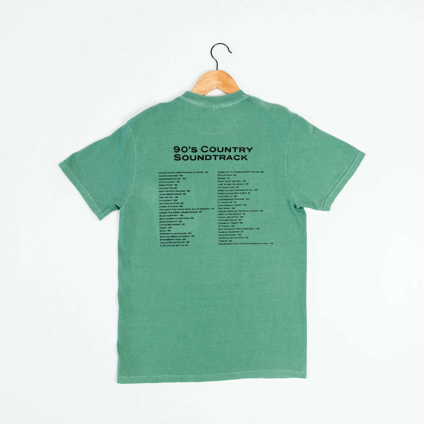 Relive the golden era of country music with our '90's Country Soundtrack' Washed Pocket Tee. This unique tee combines the classic style of 90s country with a modern, relaxed fit, making it perfect for today's farm girl. Crafted from 100% cotton for ultimate comfort and durability, this Spanish Moss colored shirt features unisex sizing, ensuring a great fit for everyone. The detailed soundtrack list printed on the back adds a nostalgic touch, reminding you of the best country hits from the 90s. Whether you're out on the farm, enjoying a country concert, or just reminiscing about the good old days, this tee is a must-have for any 90s country music fan. Fast shipping means you won't have to wait long to show off your love for a timeless musical era. Shop online now and add a piece of country music history to your wardrobe.