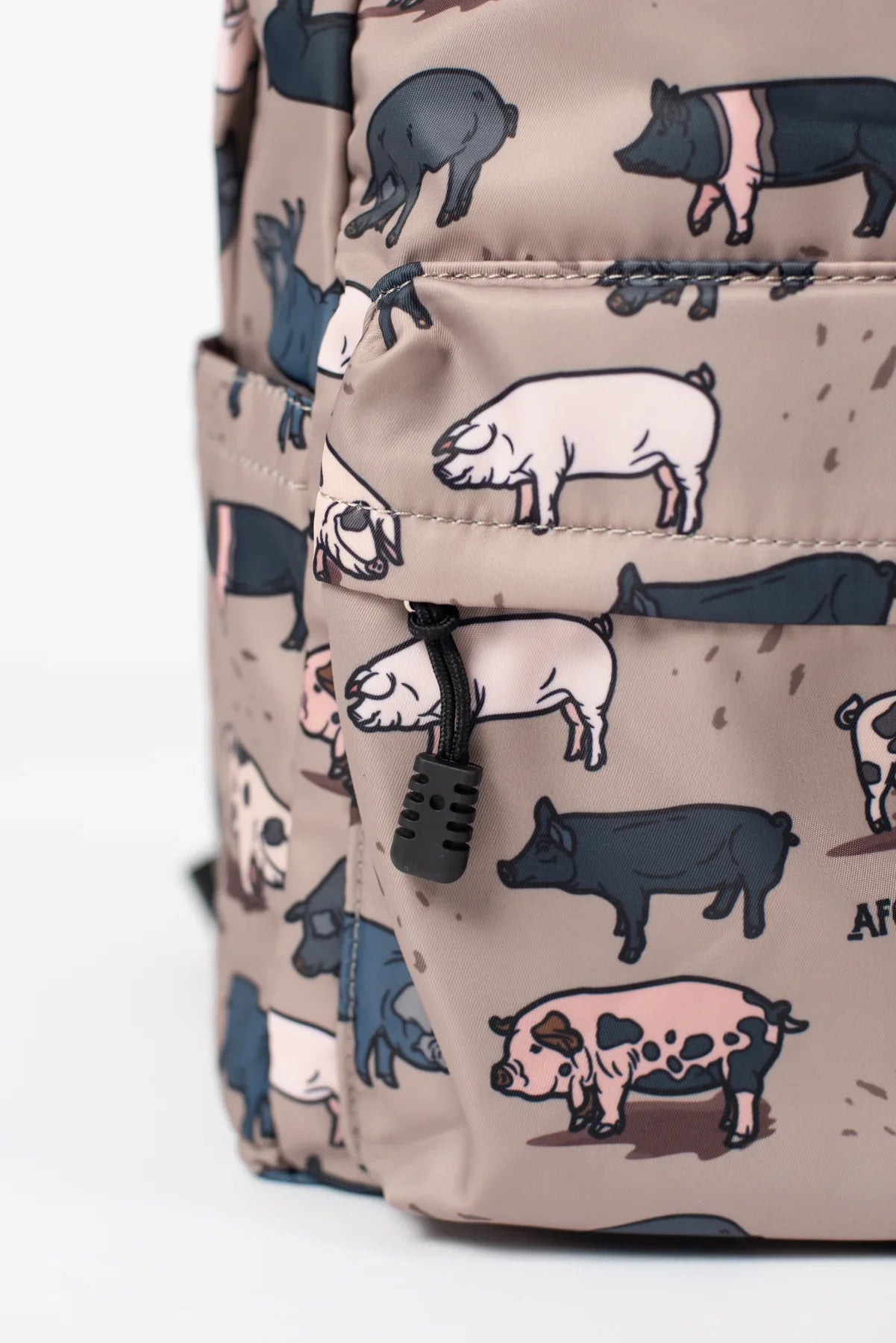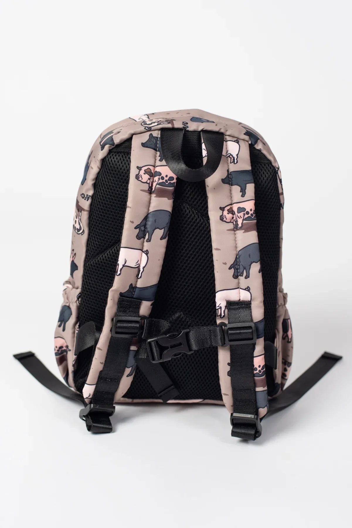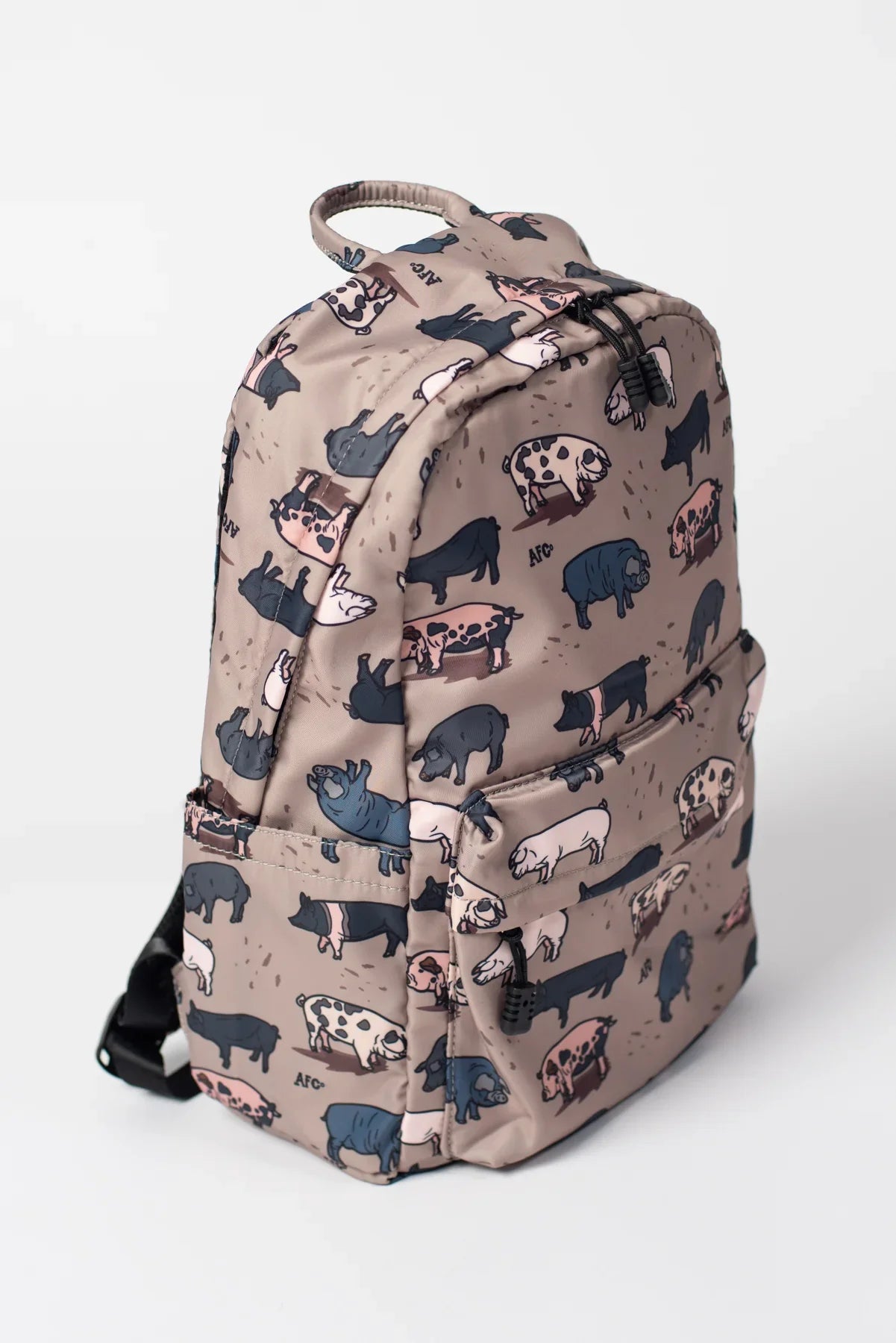 Perfect for back-to-school season, this eye-catching Pig Backpack features a vibrant tractor design against a sleek grey background. Available in two sizes—13" for kids and 17" standard—it offers multiple pouches for organized storage. The padded back and straps ensure comfortable wear all day long, making it the ideal companion for young farm enthusiasts and students alike.