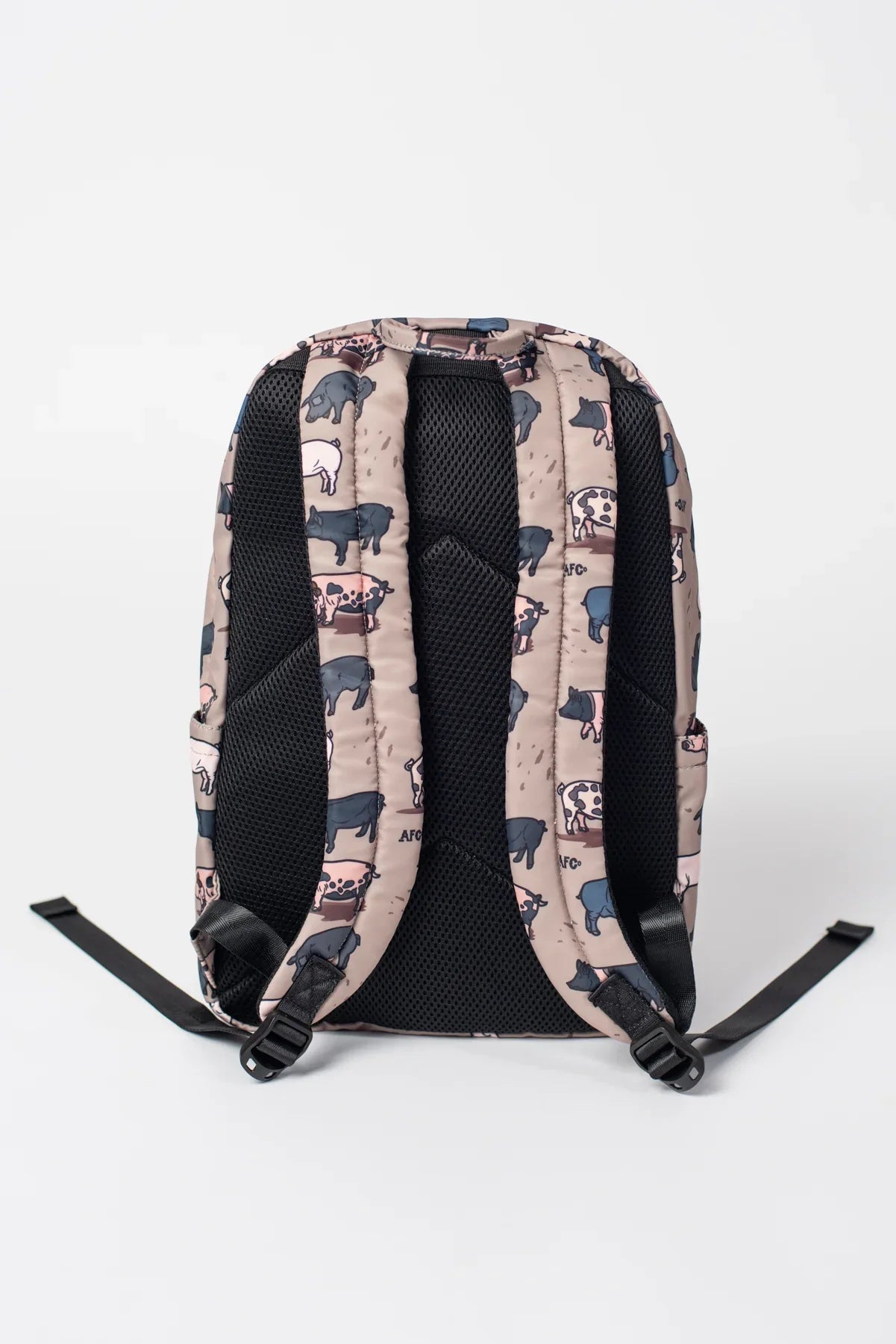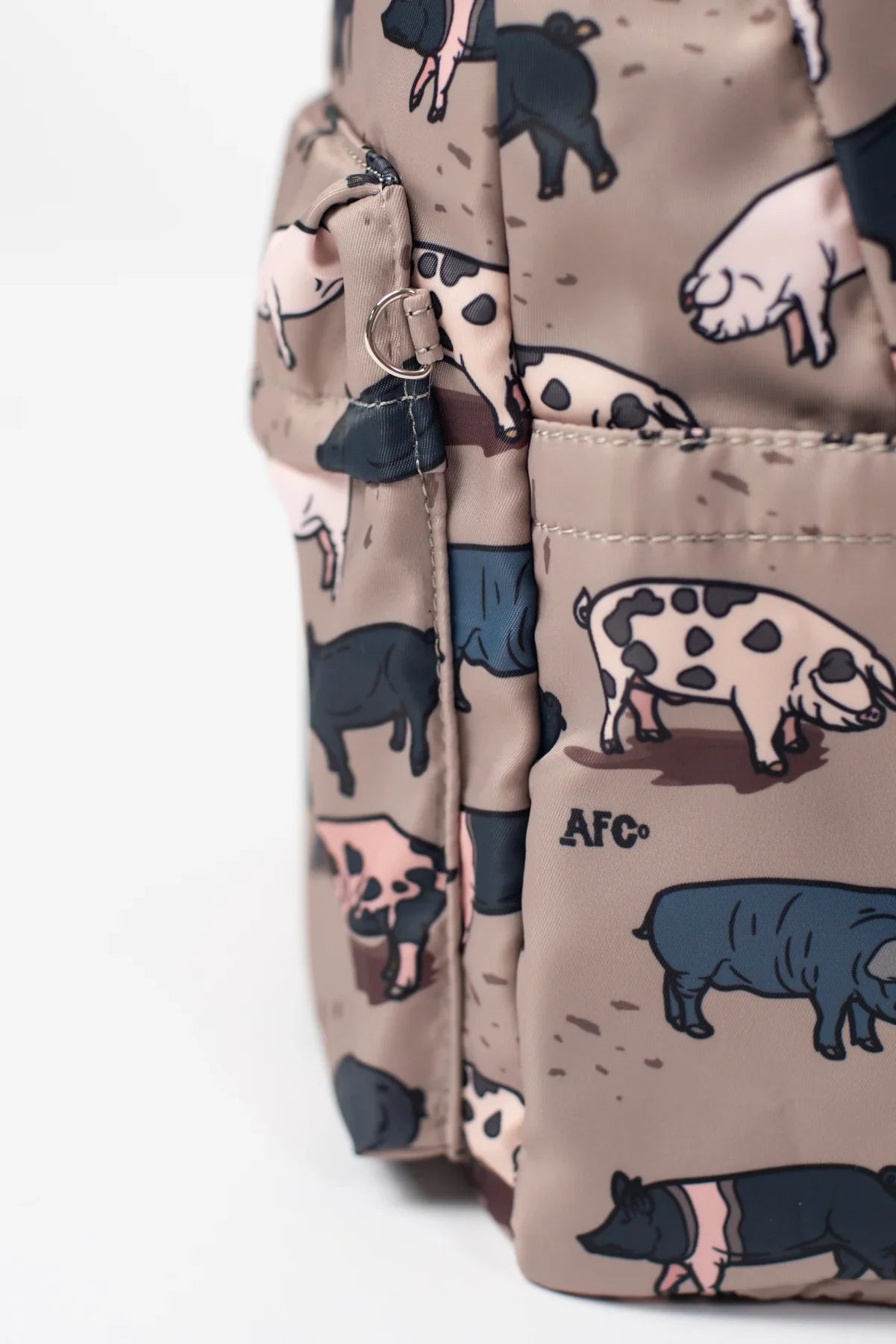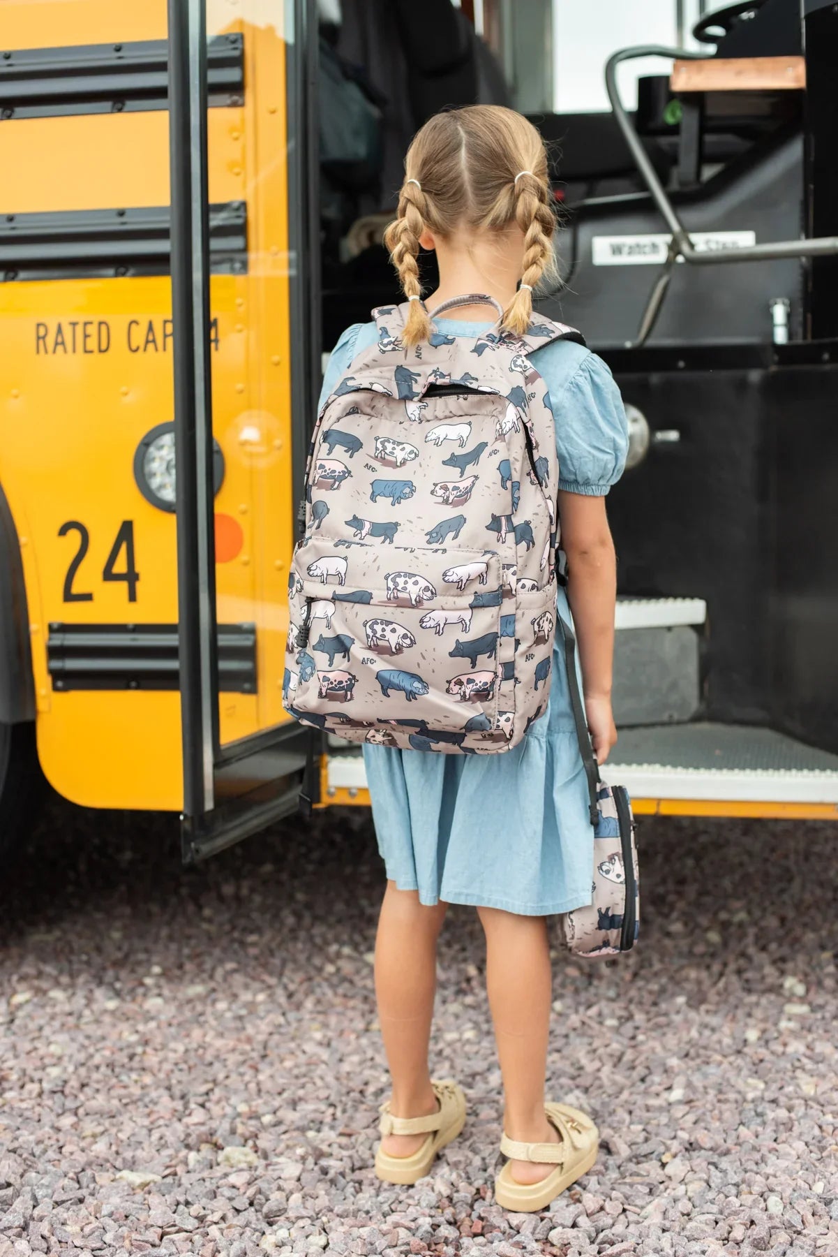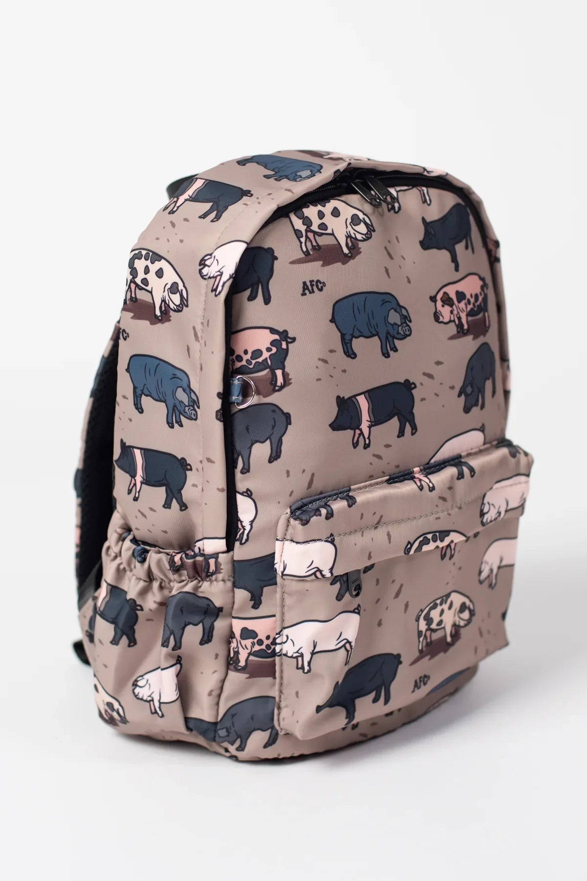 Perfect for back-to-school season, this eye-catching Pig Backpack features a vibrant tractor design against a sleek grey background. Available in two sizes—13" for kids and 17" standard—it offers multiple pouches for organized storage. The padded back and straps ensure comfortable wear all day long, making it the ideal companion for young farm enthusiasts and students alike.