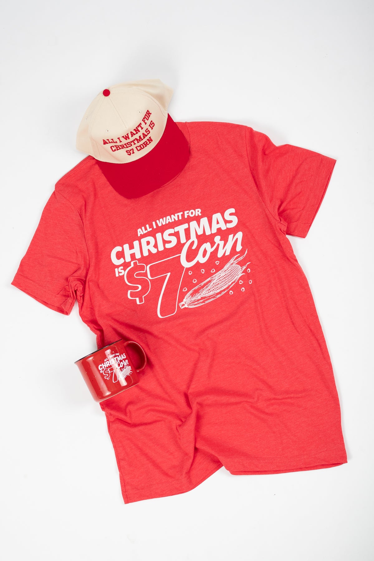 Start your mornings with a festive wink using this 15oz red speckled ceramic mug. Featuring playful white lettering and a charming corn graphic, it proudly declares, "All I Want For Christmas Is $7 Corn." Perfect for cozying up with your favorite drink while dreaming of the holiday harvest. Durable and roomy, it's a fun gift for corn lovers and holiday cheer enthusiasts alike.