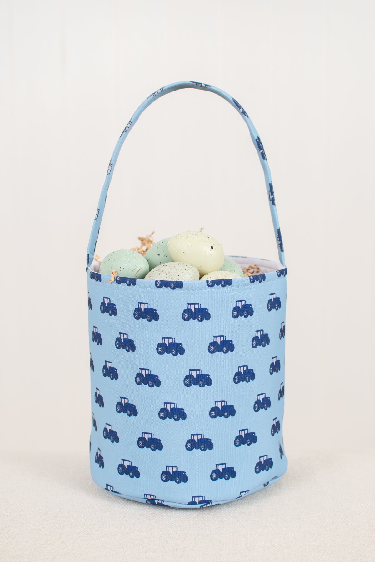 Hop into springtime fun with this charming Easter basket featuring a cheerful blue tractor design. Measuring 8.5" x 7.75", it's the perfect size for filling with eggs, treats, and treasures. Crafted from durable polyester fabric with a crisp white lining, this basket combines durability with delightful farm-themed style. Ideal for Easter celebrations, egg hunts, or as a keepsake decoration that brings smiles year after year.