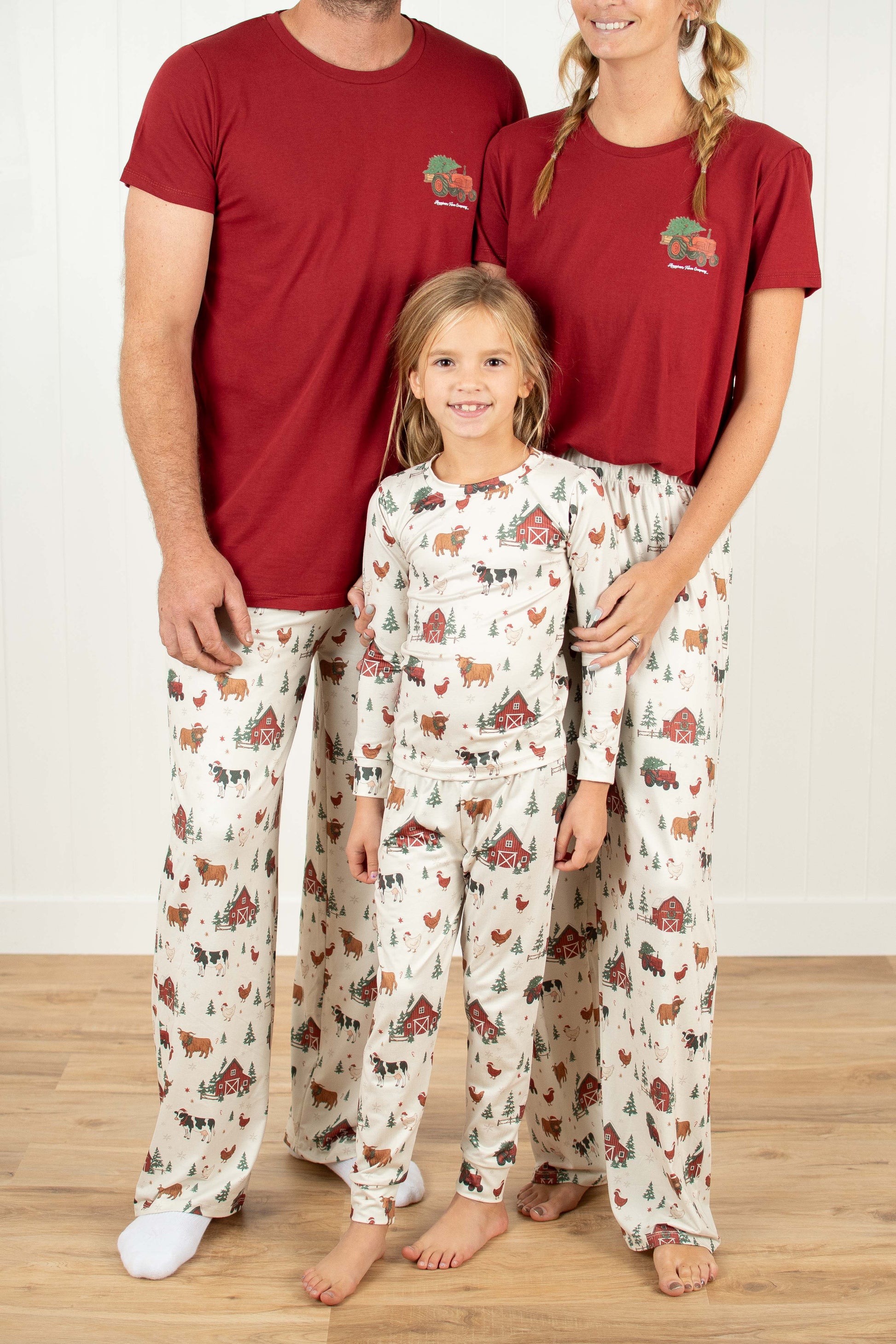 Get cozy this holiday season with our Christmas Barns & Animals Adult Pajama Shirt! Featuring a charming design on the upper left chest, this short-sleeve shirt is made from lightweight fabric that keeps you comfy all night. Pair it with the matching pajama pants to complete the festive look and match the whole family for a fun Christmas celebration.