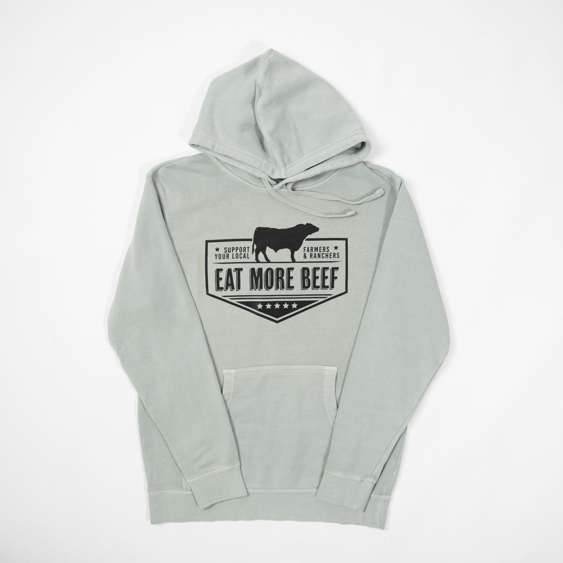 Stay warm and show your support for hardworking farmers and ranchers with our 'Eat More Beef' hoodie. Made by Independent Trading Co., this pigment sage hoodie is a cozy reminder to eat more beef and support local agriculture.