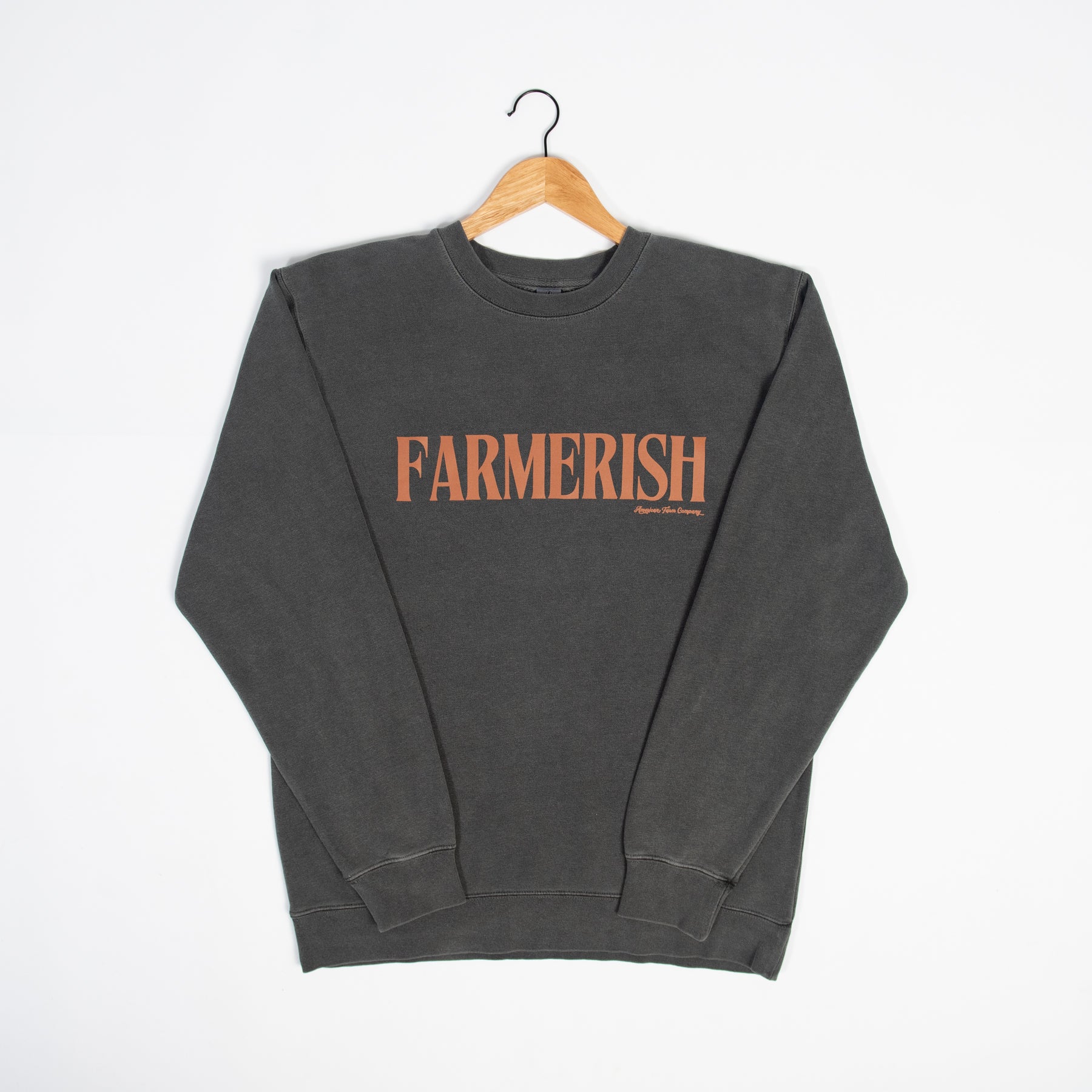 Experience the cozy farm life in our 'Farmerish' Washed Black Crewneck! Made from a soft 80% cotton and 20% polyester blend, this sweatshirt from Independent Trading Co. is perfect for those in-between weather days. Its unisex fit is slightly oversized, giving you a laid-back and relaxed style. Our top-selling design in a timeless rust hue perfectly expresses your love for the farm.