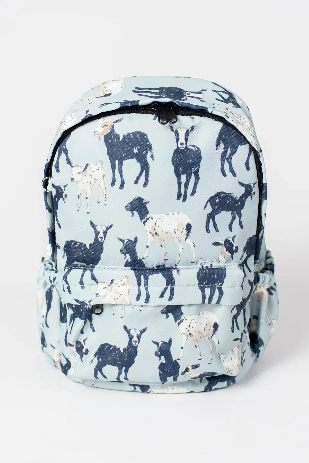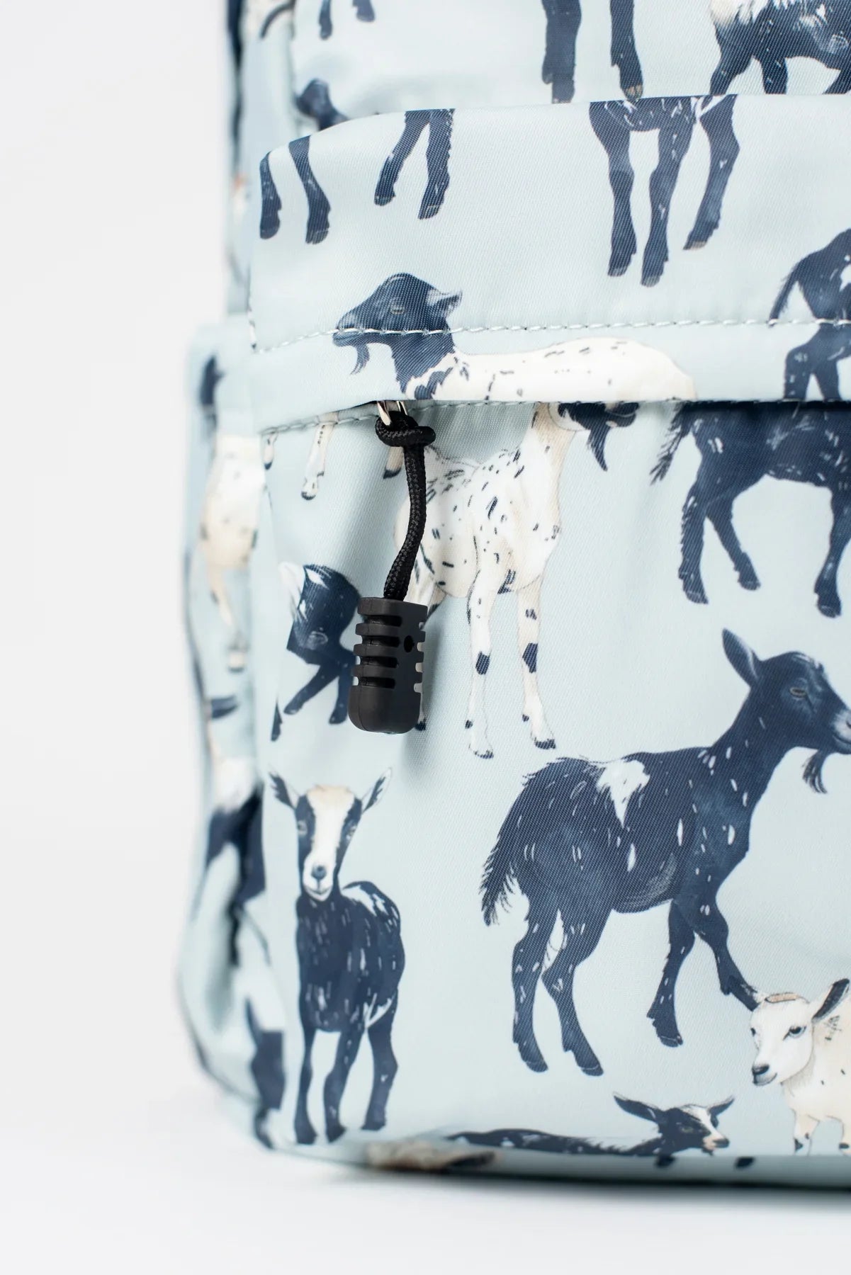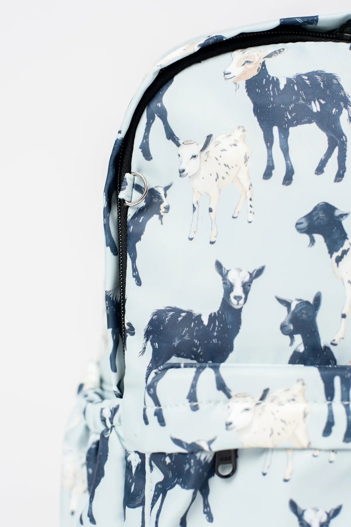 Perfect for back-to-school season, this charming Goats Backpack features an adorable goat design against a refreshing mint background. Available in two convenient sizes—13" for kids and 17" standard—it's designed for comfort with padded back and straps. Multiple pouches provide ample storage for all your essentials, making organization effortless. Don't settle for ordinary when you can carry your belongings in style and comfort with this unique backpack!