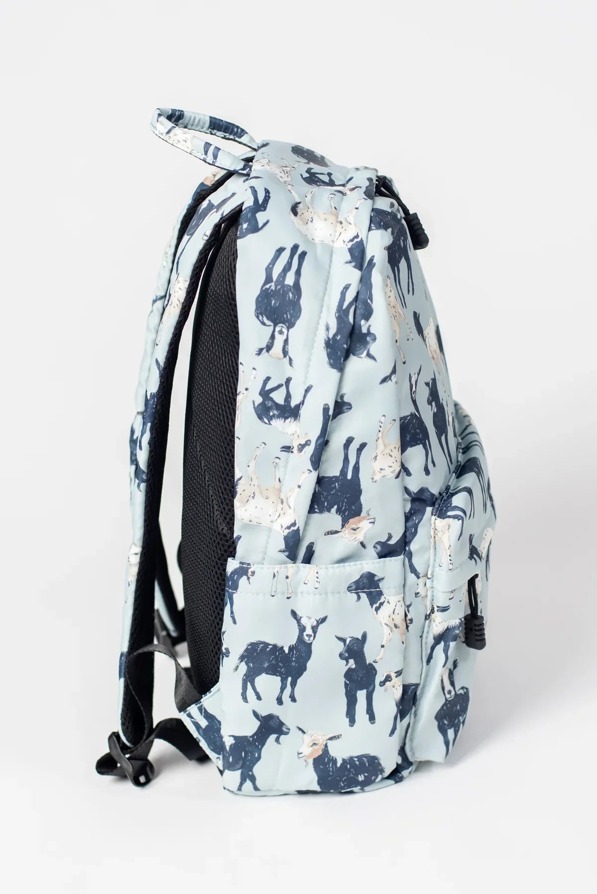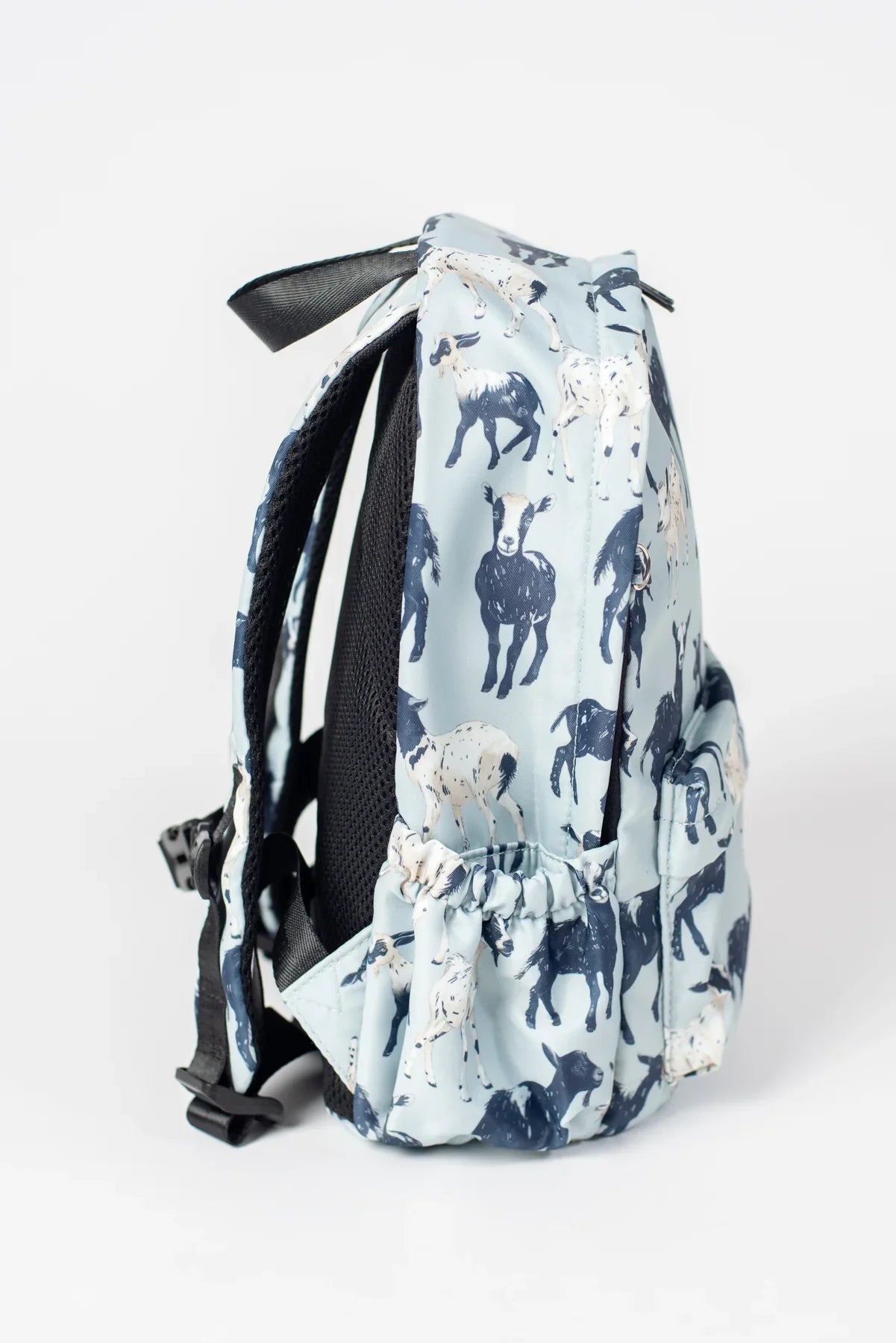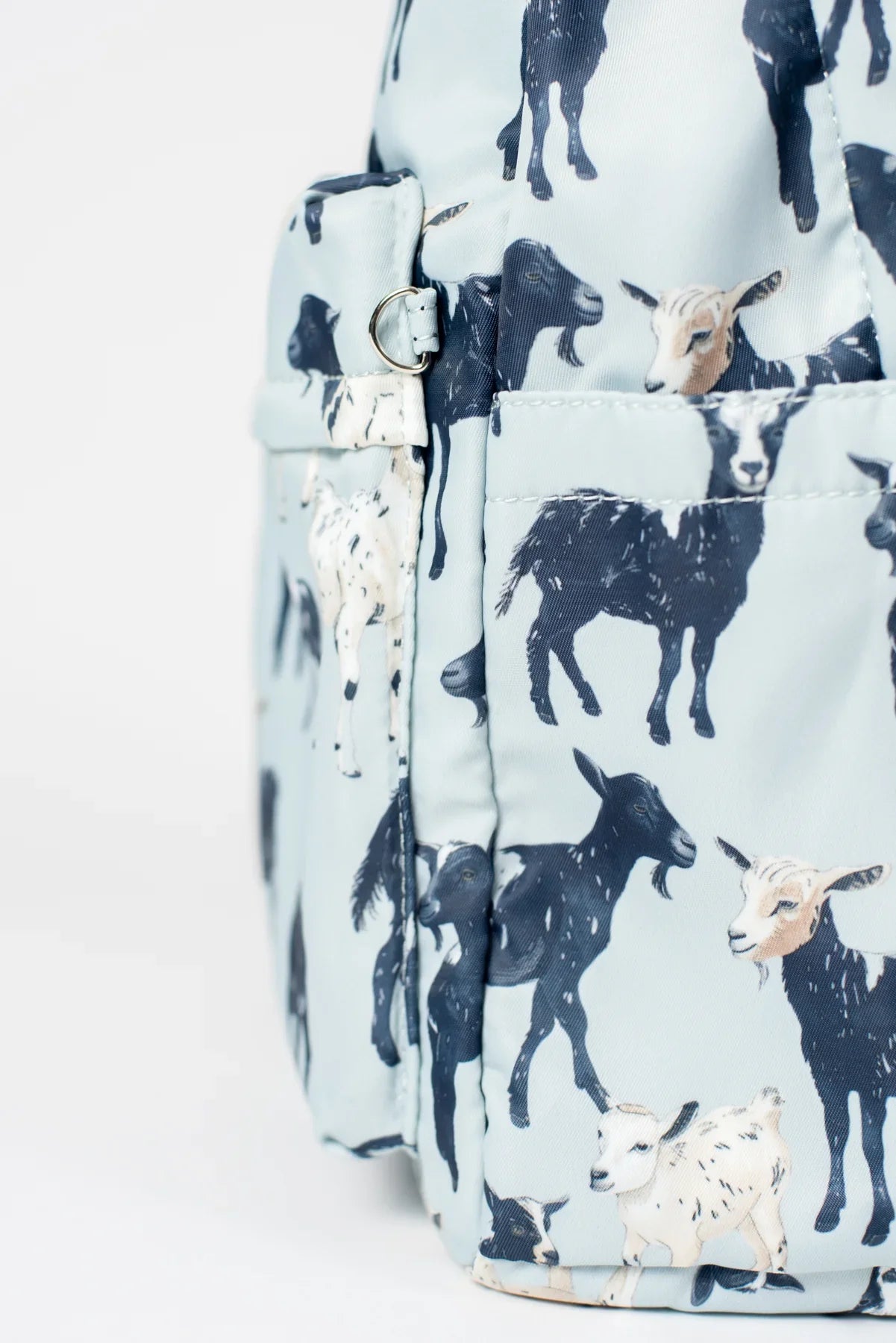 Perfect for back-to-school season, this charming Goats Backpack features an adorable goat design against a refreshing mint background. Available in two convenient sizes—13" for kids and 17" standard—it's designed for comfort with padded back and straps. Multiple pouches provide ample storage for all your essentials, making organization effortless. Don't settle for ordinary when you can carry your belongings in style and comfort with this unique backpack!