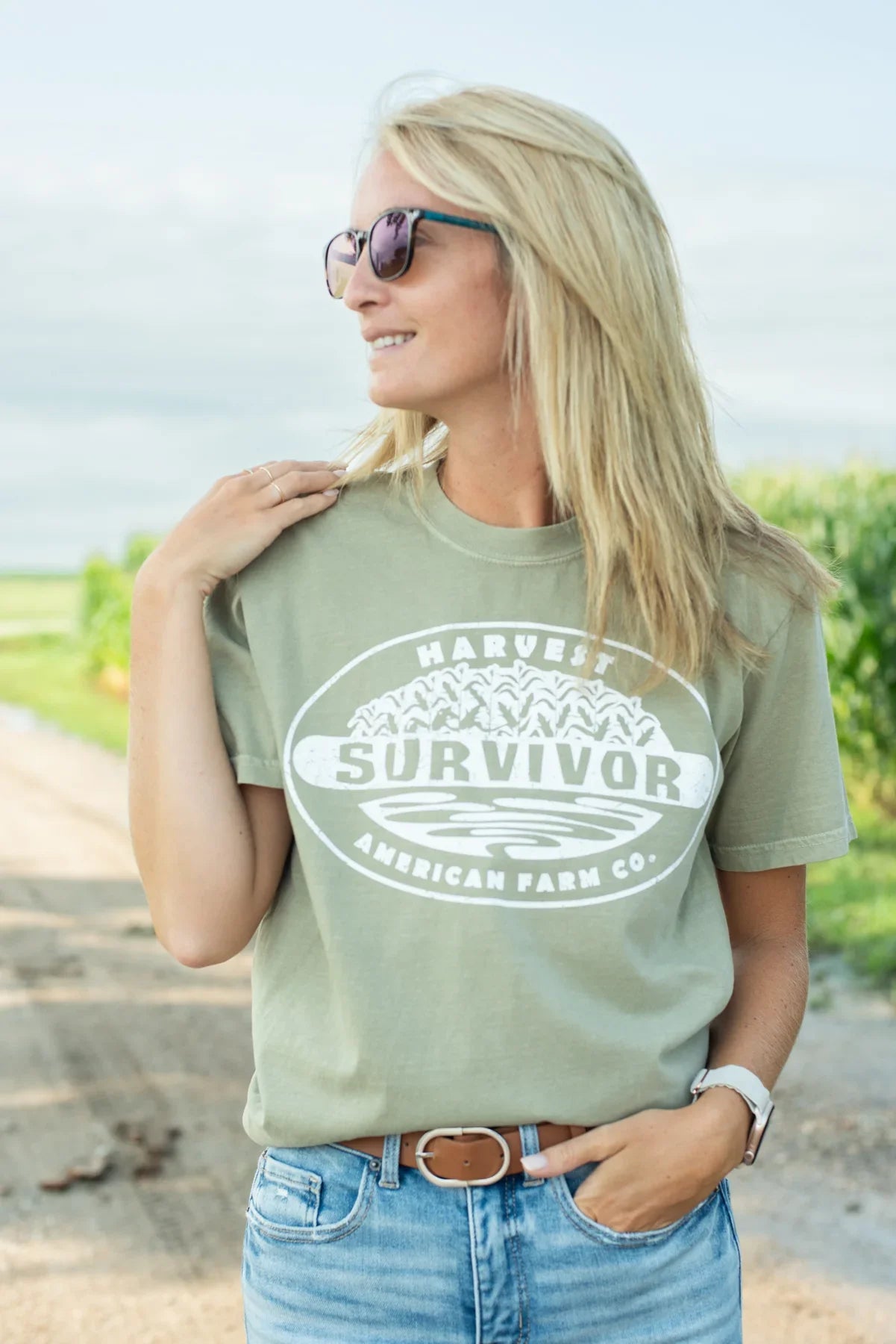 Celebrate your hard work with the Harvest Survivor Mocha Tee! This comfy Comfort Colors tee in a versatile khaki shade is perfect for those long harvest days or casual hangouts. Soft, durable, and ready to keep up with your survivor spirit, it’s a playful nod to your harvest hustle. Wear it proud and enjoy the cozy fit that feels as good as a successful season.