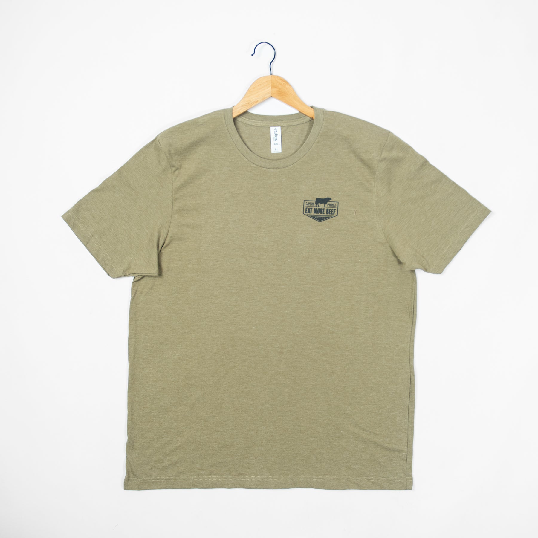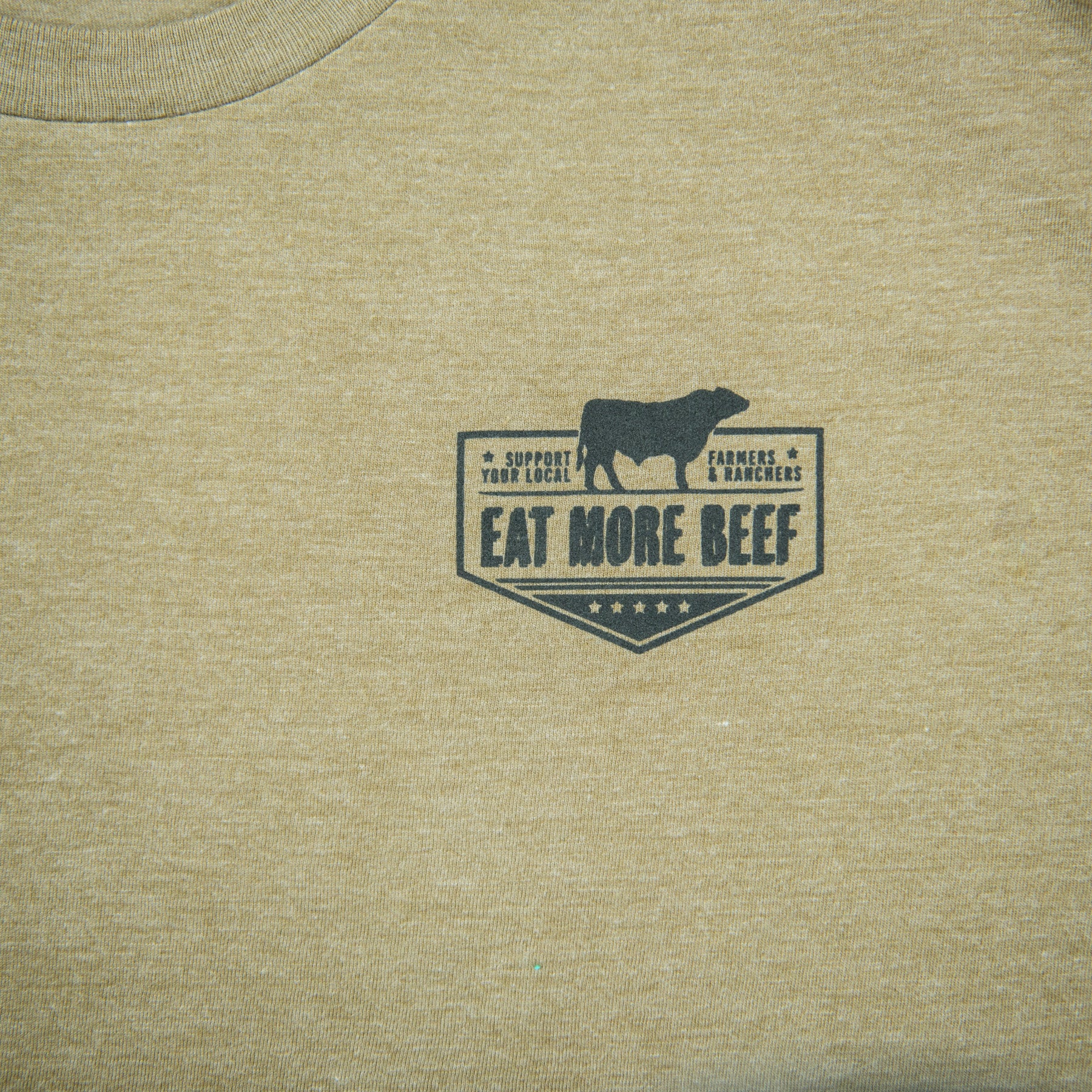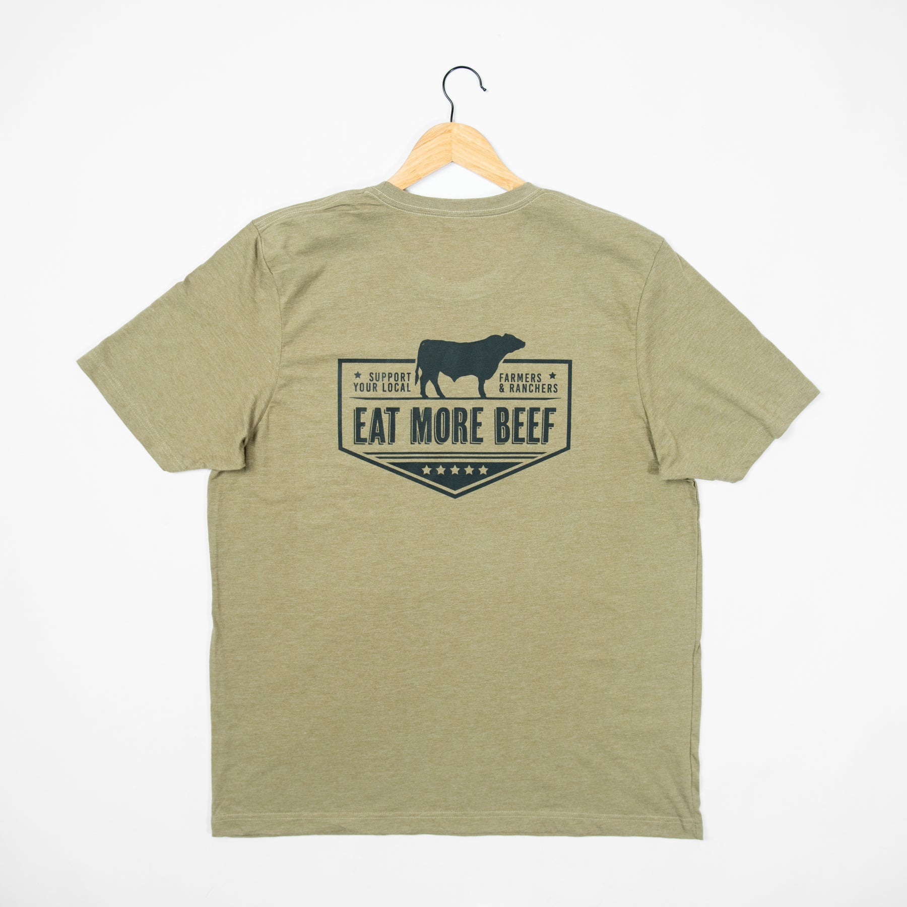 Add this 'Eat More Beef' Green Tee to your wardrobe and show your support for hardworking farmers and ranchers. With its next level essentials design and military green color, this tee is perfect for any casual occasion. Don't just wear a tee, make a statement with a cause.