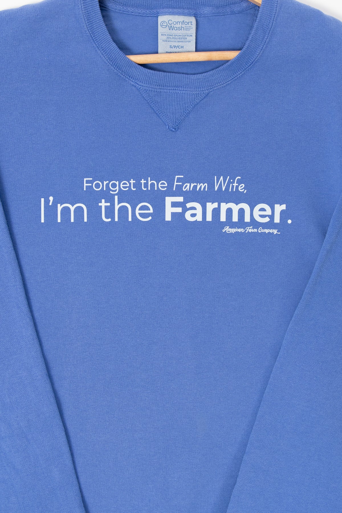 Forget the farm wife—you're the one running the show. This crewneck tee flips the script with a bold, tongue-in-cheek message that celebrates who's really in charge. Crafted from soft Comfort Wash fabric in a vibrant blue shade, it's built for durability through long days in the field or around town. Relaxed fit, quality construction, and a statement that speaks for itself.