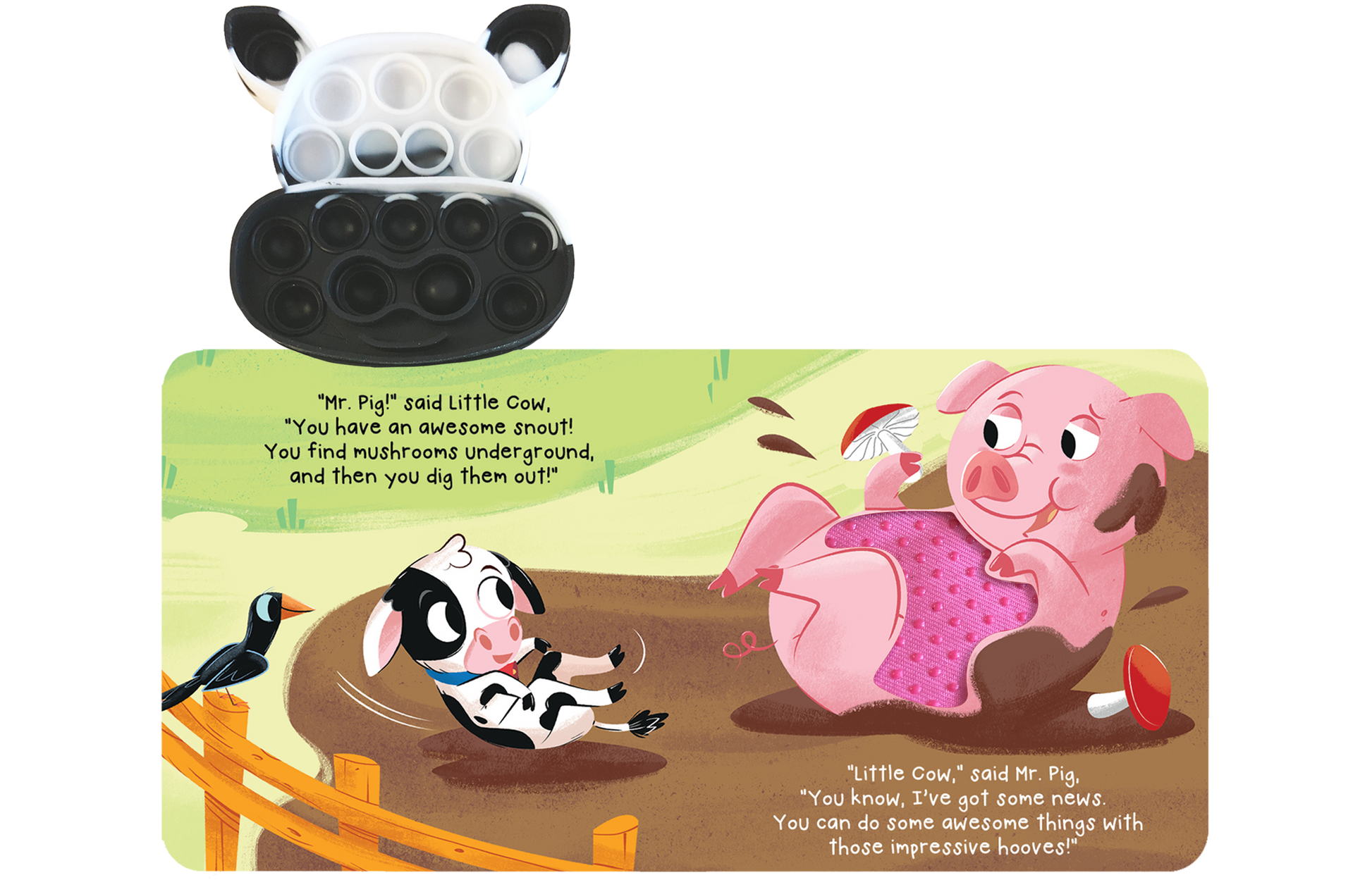 Meet Little Cow, a delightful sensory companion that transforms storytime into interactive playtime! This charming fidget book features a pop-it cow head, crinkly textures, and touchable elements that invite hands-on exploration. Follow Little Cow's heartwarming journey as she arrives at the farm feeling shy, then discovers friendship with her new animal pals through a fun, rhyming tale. Perfect for curious little ones, this playful book combines reading with sensory play to spark imagination, encourage cognitive development, and deliver satisfying tactile stimulation. Watch your child giggle, pop, and crinkle their way through a story about belonging and friendship!