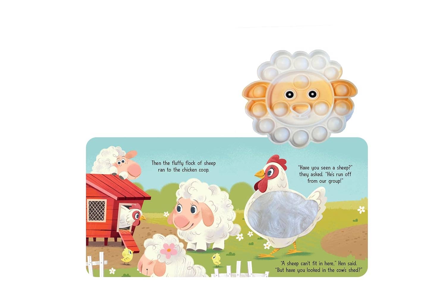 Follow Little Sheep on a heartwarming farmyard adventure in this interactive sensory book! Packed with crinkly textures, poppers, and tactile elements, this playful story engages curious minds while teaching kindness and consideration. As Little Sheep goes missing, a cast of friendly farm animals springs into action to help with the search. Perfect for little explorers, this sensory fidget book combines storytelling with hands-on play to spark imagination and support early.