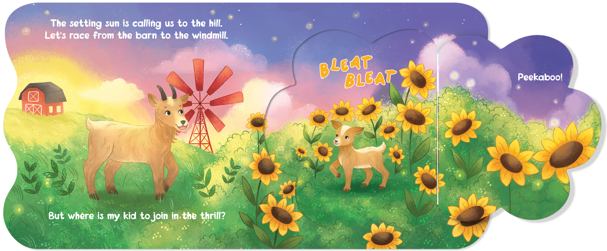 Discover the magic of the farmyard with this charming board book! Watch little ones giggle with delight as they lift chunky flaps to reveal where all the farm animals are playing. Featuring vibrant, whimsical illustrations and bouncy rhyming text, this interactive adventure keeps curious toddlers engaged page after page. Perfect for developing early reading skills while having a blast uncovering surprises. A delightful addition to any young reader's collection.