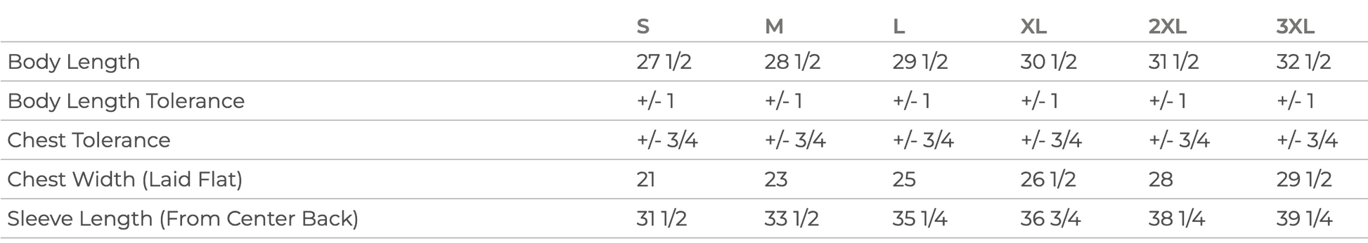 S, M, L, XL, 2XL, 3XL |