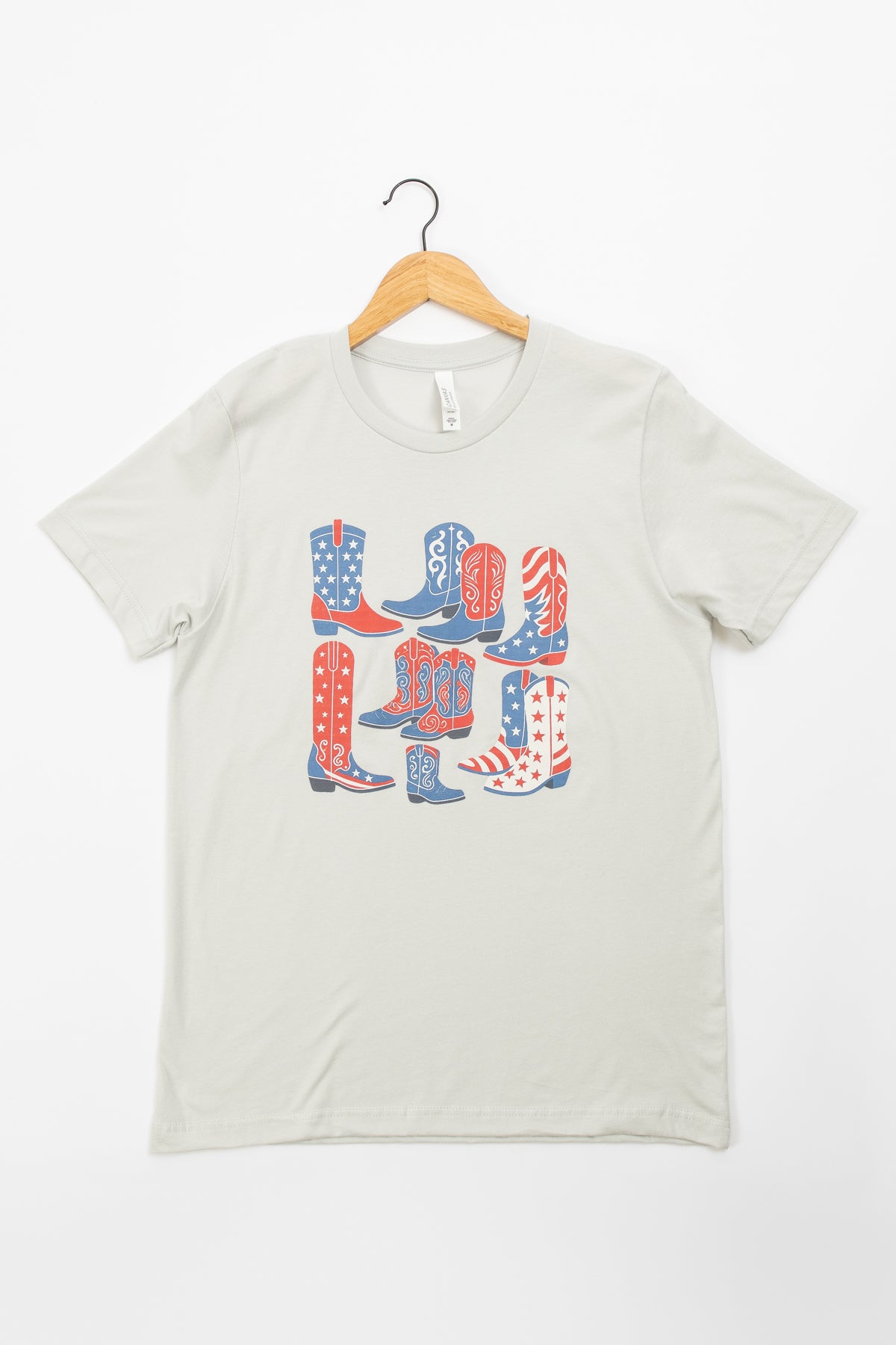 Rock your patriotic spirit with a western twist! This fun Patriotic Western Boots Tee showcases an eye-catching red, white, and blue cowboy boot graphic that celebrates American style. Made from premium Bella Canvas fabric in a sleek silver grey, it's soft, breathable, and built to last. Perfect for rodeos, summer festivals, or anyone who loves mixing country charm with patriotic flair. Wear it proud and let your boots do the talking!