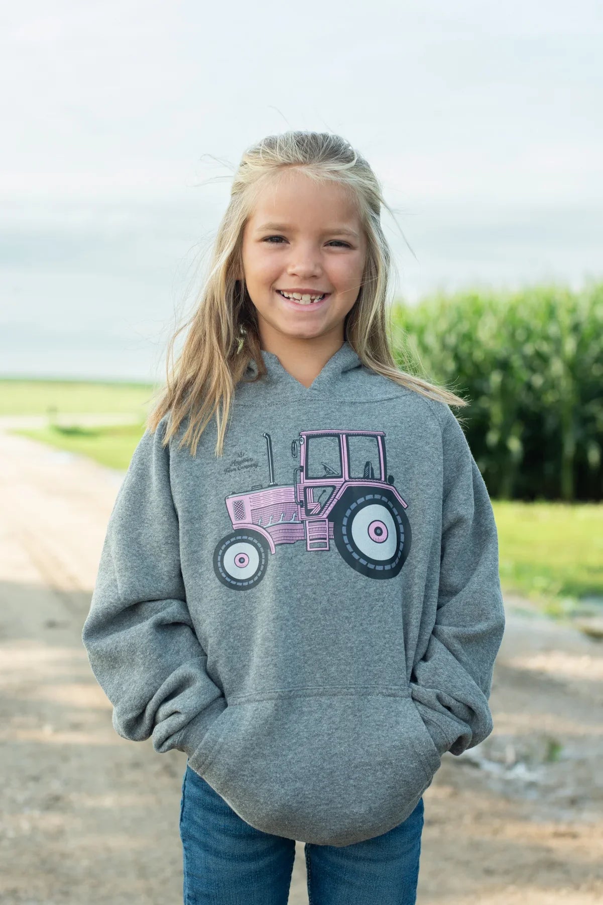 The "Pink Tractor" Youth & Toddler Hoodie is a charming and cozy addition for any child who adores farm life. This hoodie features a playful tractor design on a heather grey fabric, crafted from a soft blend of cotton and polyester. It's perfect for keeping your little one warm and stylish, while celebrating their love for tractors. The unisex fit ensures it's comfortable for all-day wear, making it a practical choice for both adventures outdoors and relaxing at home.