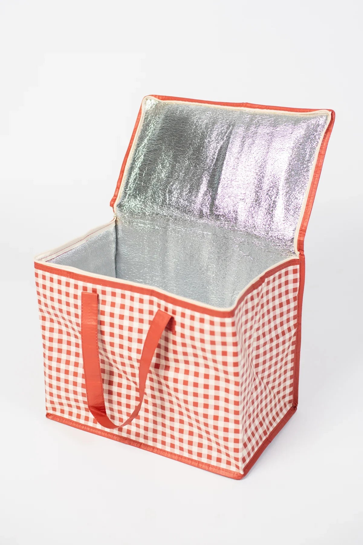 Make harvest meal delivery a breeze with the Rust Field Delivery Meal Bag! Its cozy rust and cream checkered pattern brings a bit of farmhouse charm, while the laminated woven exterior and aluminum-lined interior keep your meals perfectly hot or cold. Designed for farmers on the move, this durable to-go bag is your new favorite sidekick for fresh, field-ready lunches.