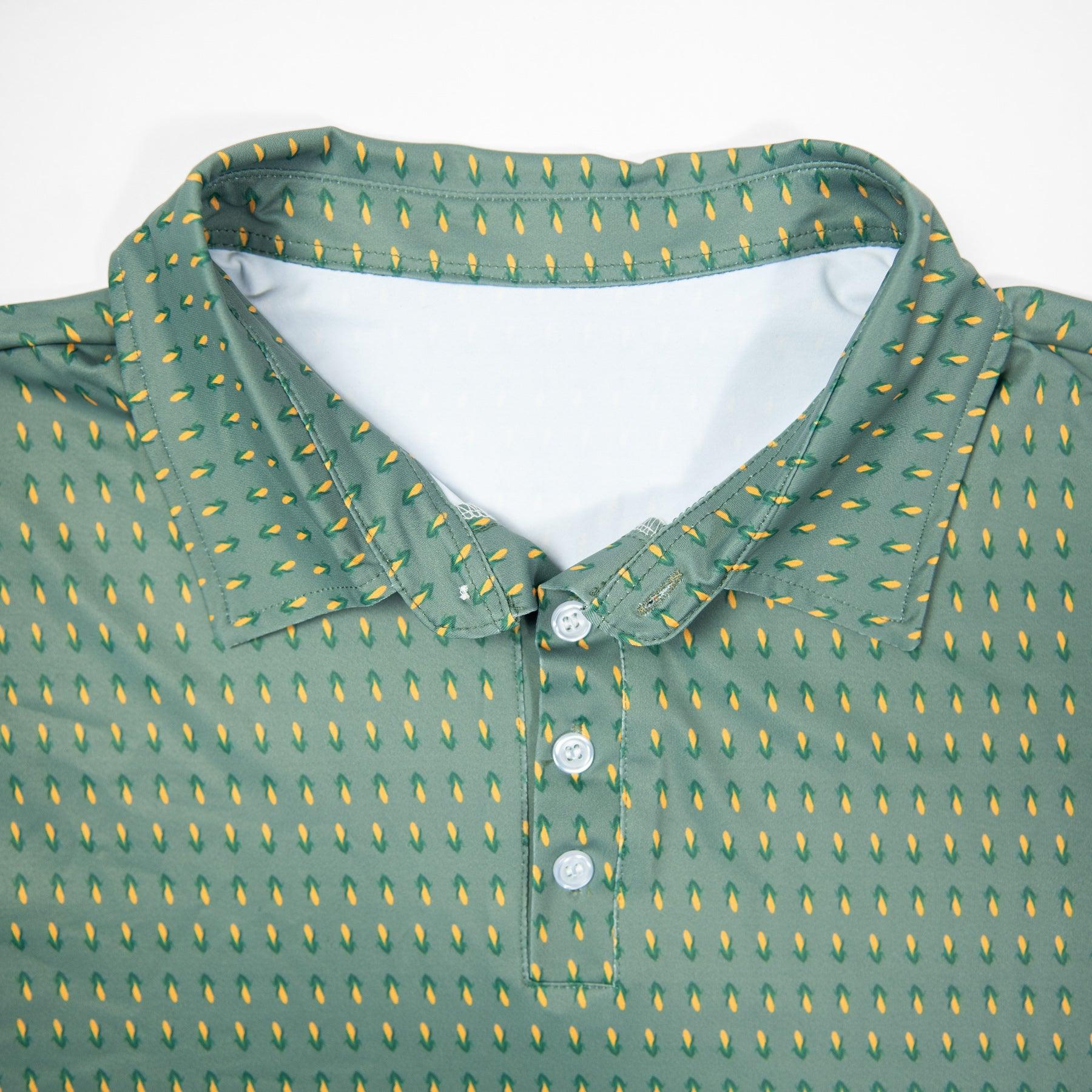 The Retro Corn Performance Polo is a must-have for any man's wardrobe. This polo features a unique design of retro corn. Made with performance material, it offers stretch for comfort and comes in a range of sizes from small to 3XL. Upgrade your polo game today!