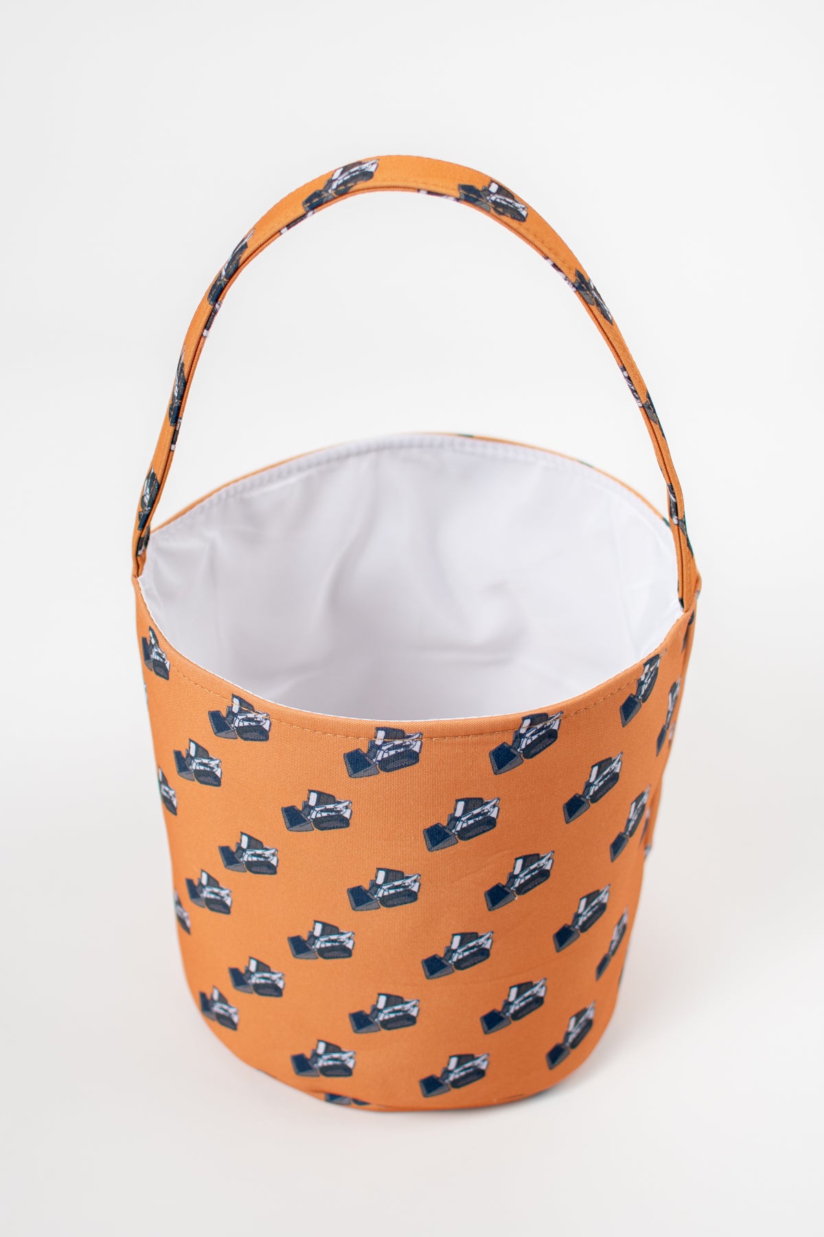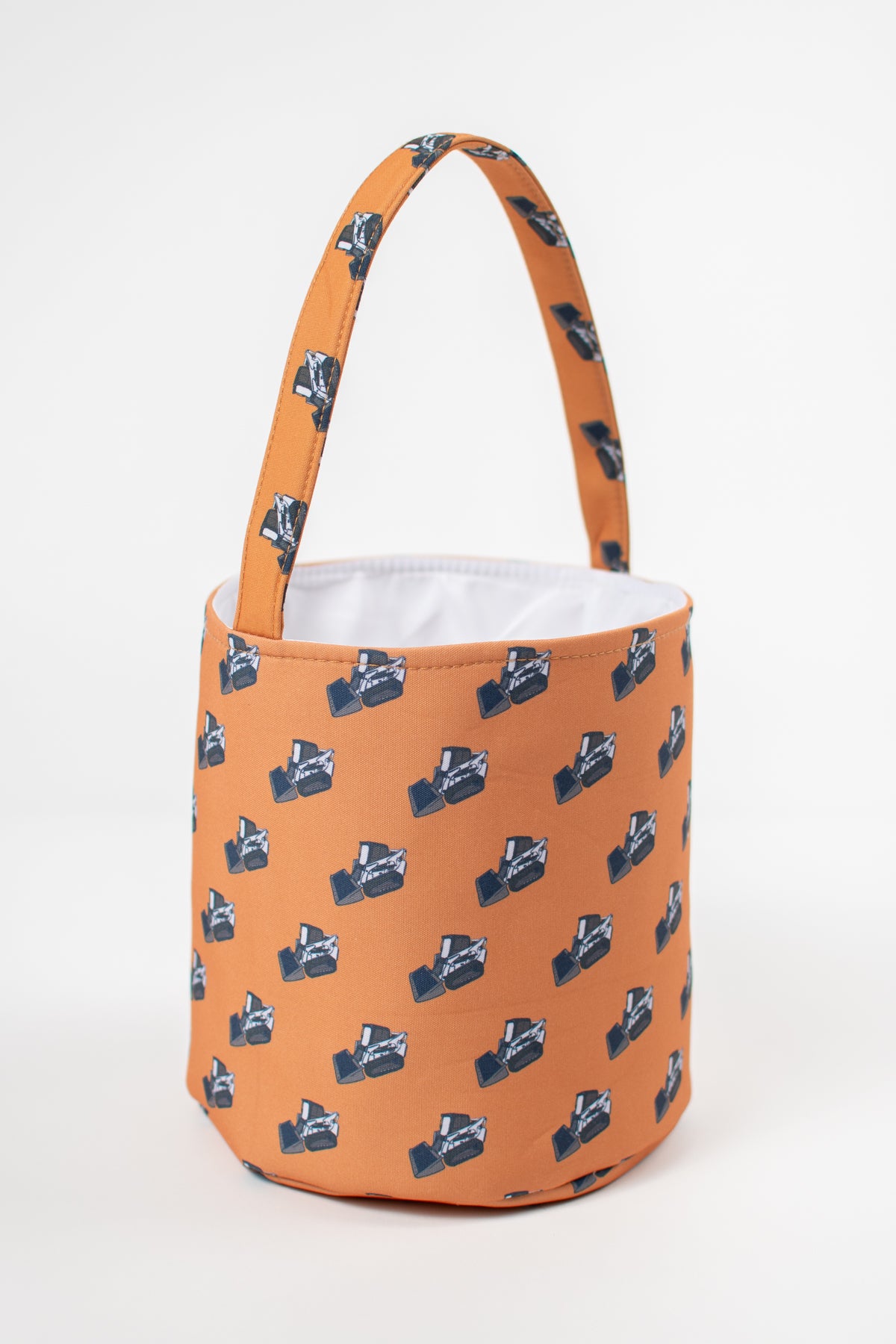 Hop into spring with this charming Easter basket featuring a bold skid loader design on a rich brown background. Crafted from durable polyester fabric with a crisp white lining, this 8.5" x 7.75" basket is built to hold treats, toys, and treasures through all your Easter celebrations. Perfect for little ones who love construction and farm equipment—a playful twist on a classic holiday favorite.