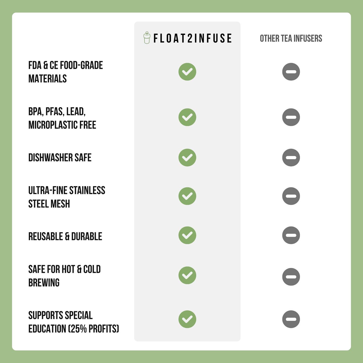 Float2infuse was founded by Samantha, who designs and assembles the steepers in the US. 25% of the profits are donated to special education initiatives.