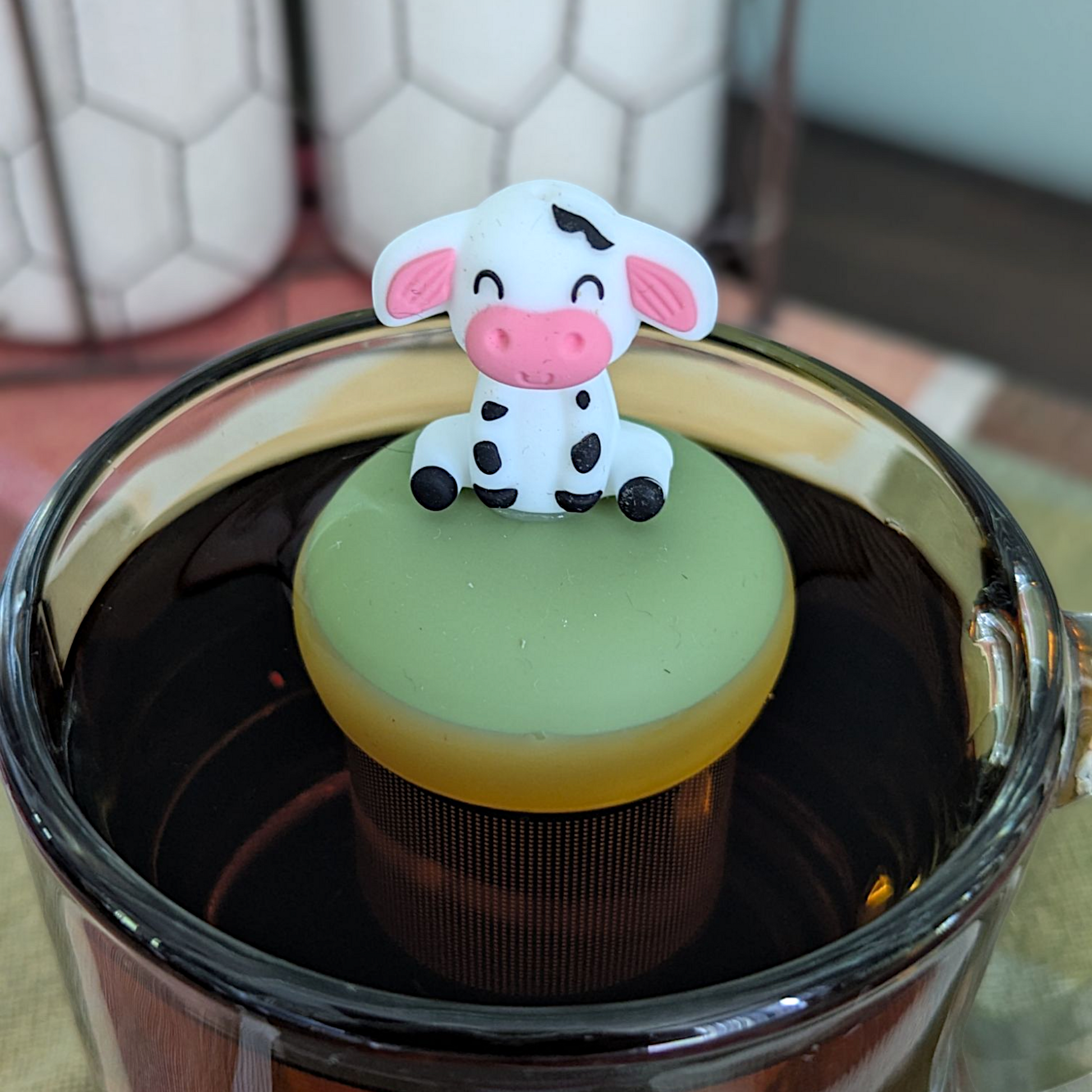 This Spotted Cow Tea Steeper makes loose leaf tea accessible with any drinkware, anytime, anywhere.