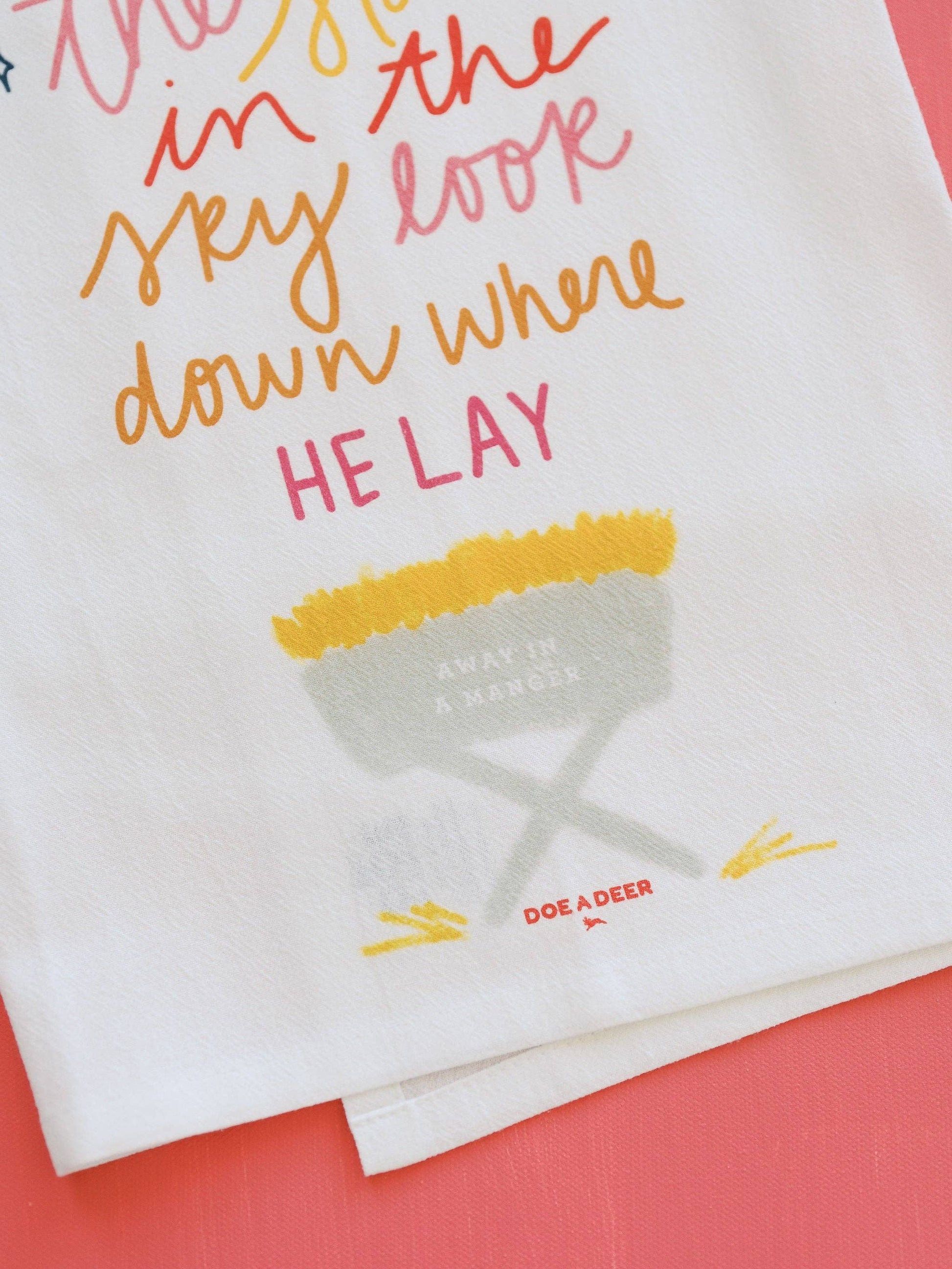 Celebrate the magic of that first Christmas with this charming Flour Sack Towel, featuring delightful hand-lettering and a snug manger scene that brings warmth to your kitchen and counters. Soft and absorbent, it’s ideal for holiday decorating, drying dishes, or bundling up a batch of festive cookies. A twinkling tribute to the season’s true meaning, this towel makes a joyful addition to your home or a sparkling gift for someone special.