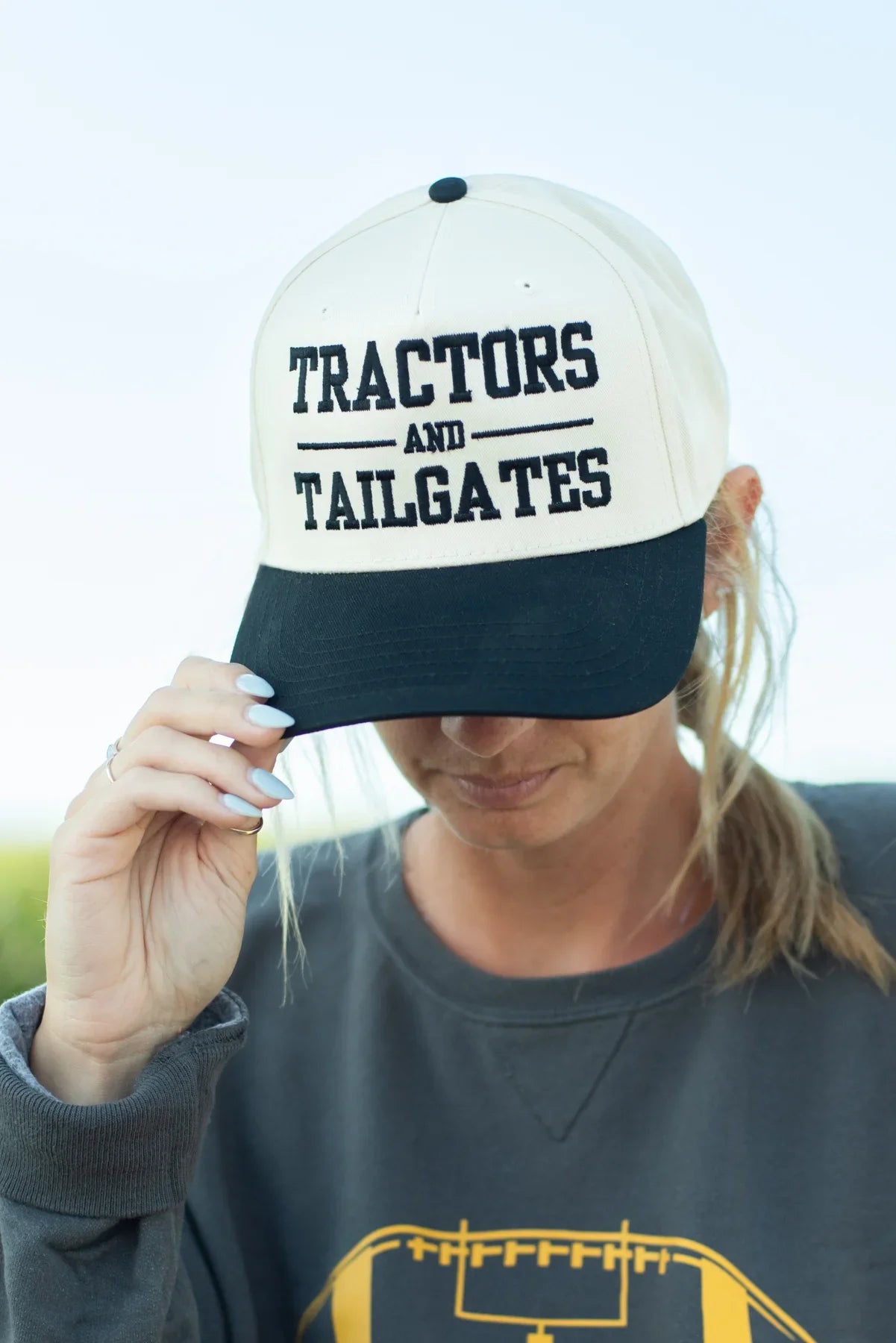 Celebrate your love for farm life and football with the playful 'Tractors & Tailgates' embroidered trucker hat. With its comfy fit, this hat keeps you cool while adding a touch of fun to your look. Perfect for game days or casual outings, it’s a cheerful way to showcase your unique spirit.