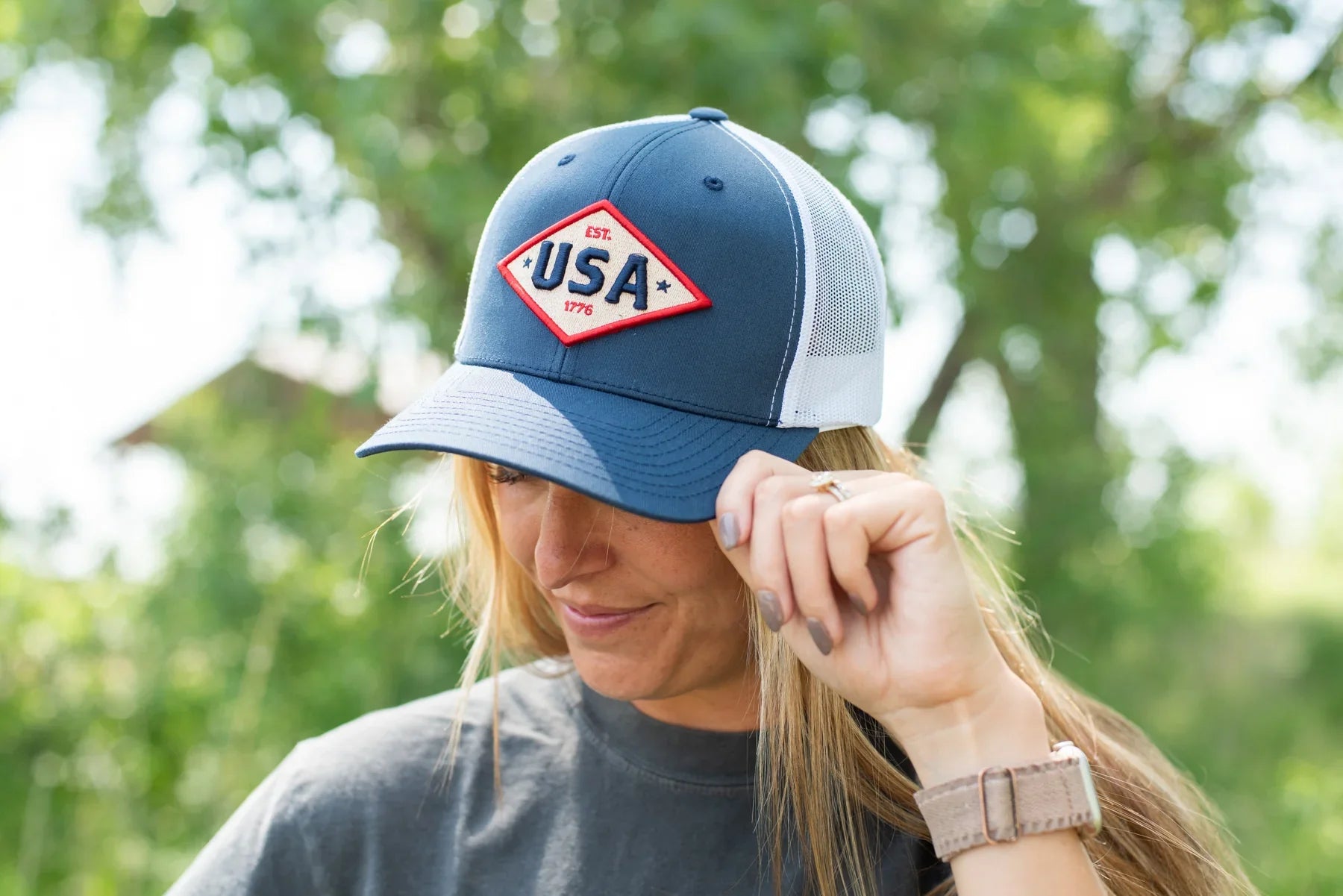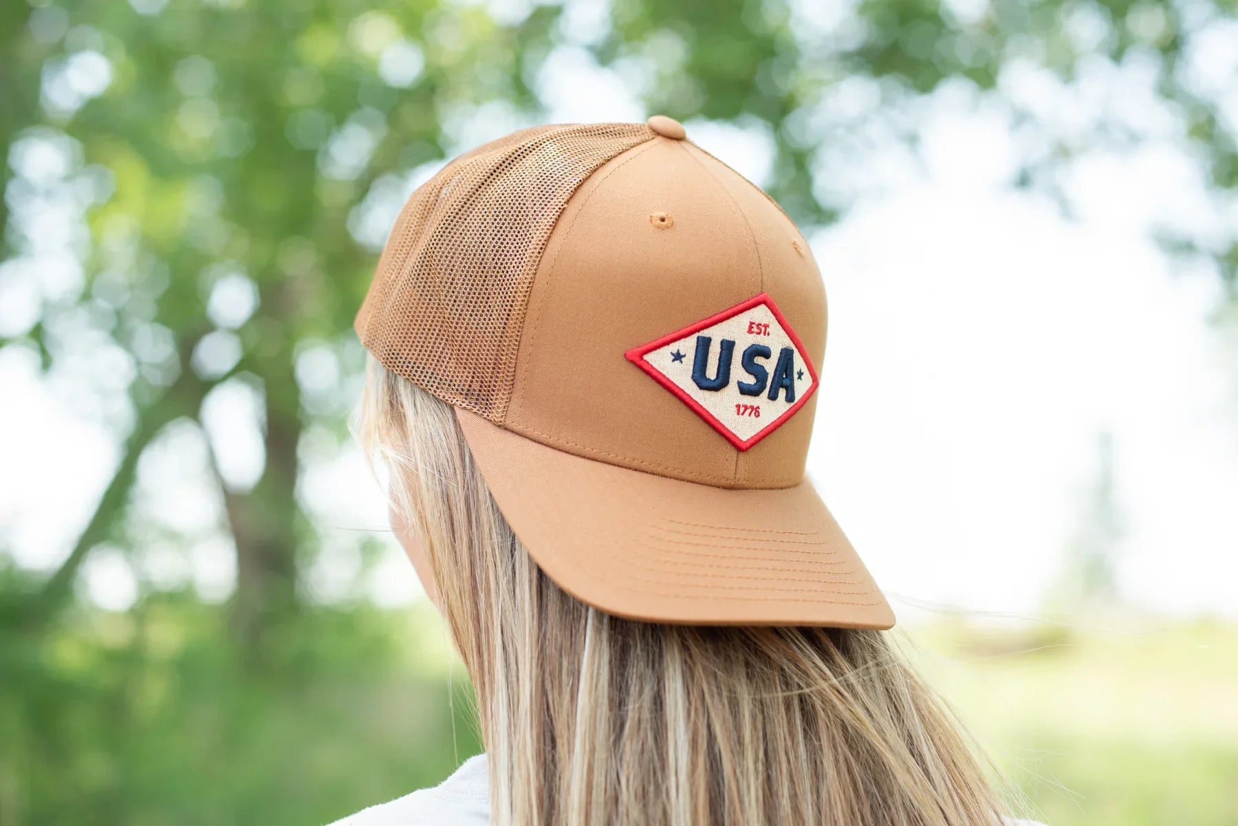 Show your patriotic spirit with our playful 'USA' Patriot Snapback Hat! This eye-catching hat available in caramel color or navy/white features beautiful embroidery that makes a bold statement. Adjustable snapback design ensures a perfect fit for all your outdoor adventures. Wear your national pride with style!