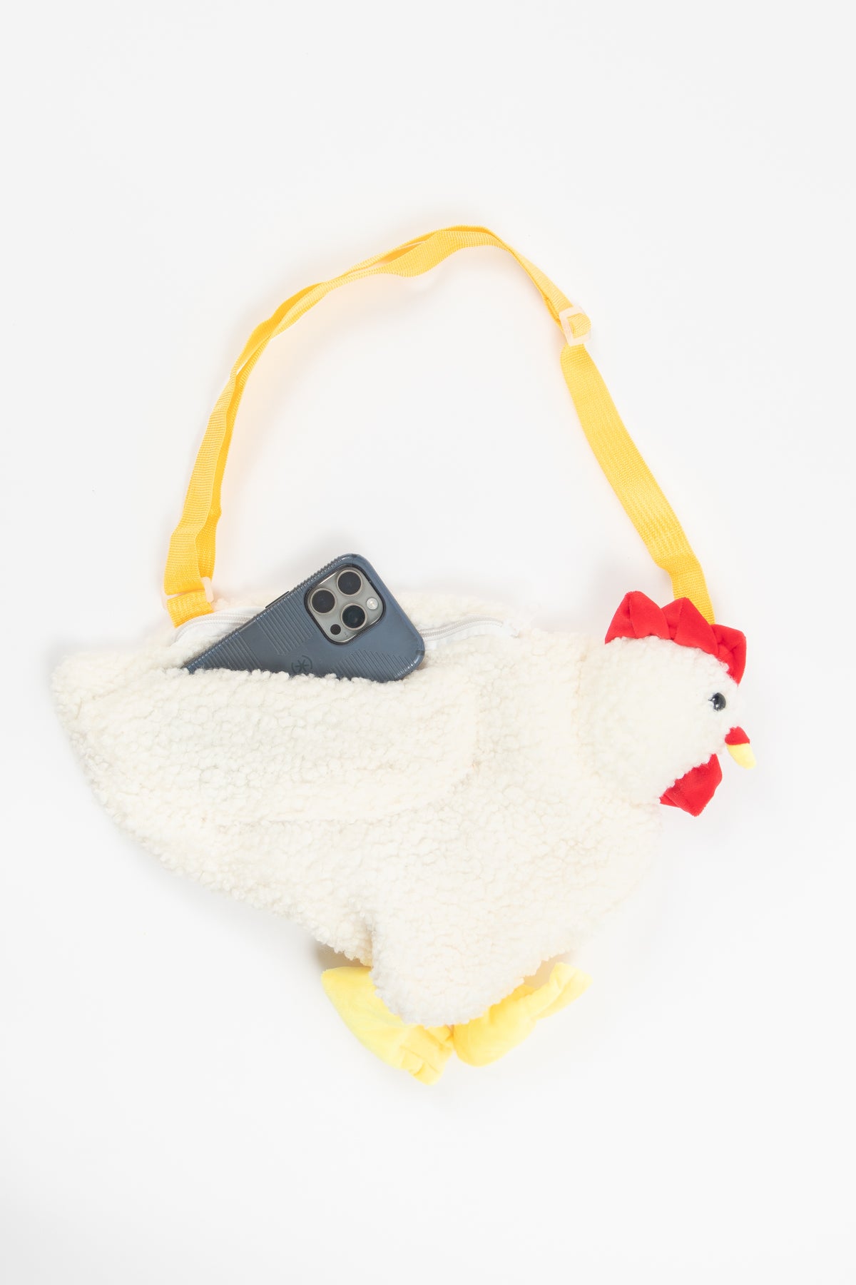 Meet your new feathered friend! This brown chicken shoulder bag brings barnyard charm to your daily carry. Snuggle up to its plush sherpa-like texture while the adjustable strap fits just right. Tuck your treasures into the wing pocket and zip it all up with ease. It's the kind of quirky accessory that makes people smile—and maybe cluck a little too!